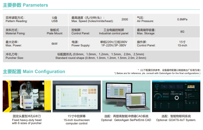 Single-head machines can make up to 2,000 holes per minute, and double-head ones up to 4,000. A 15-inch touch screen control panel offers a user-friendly interface. The XY axis uses a ball screw direct drive for high-precision punching.